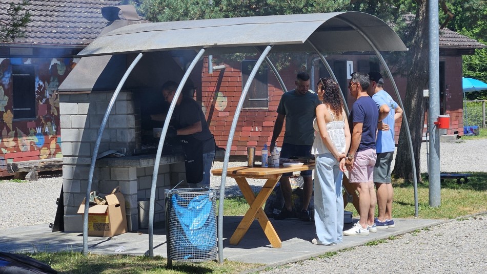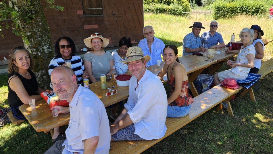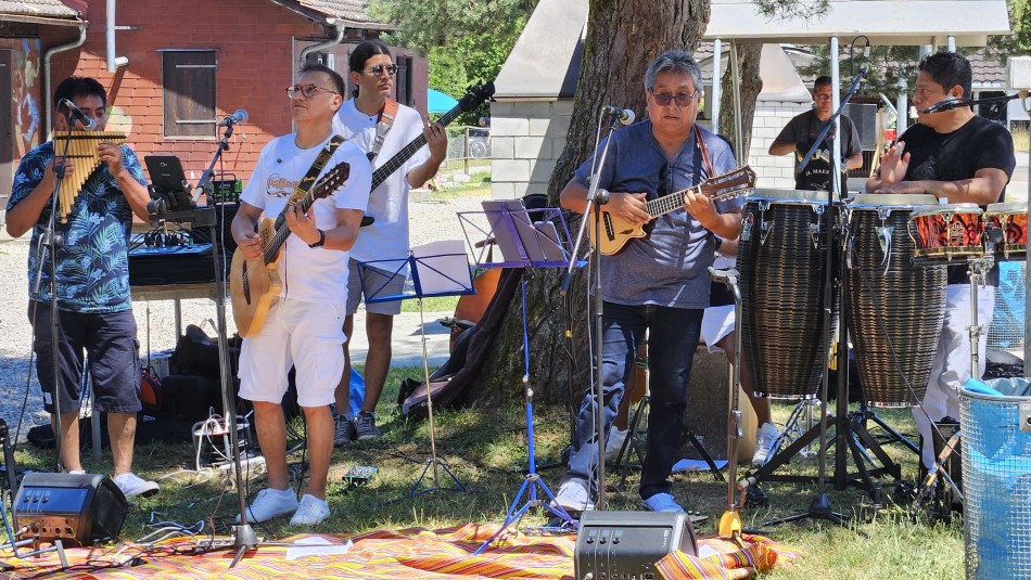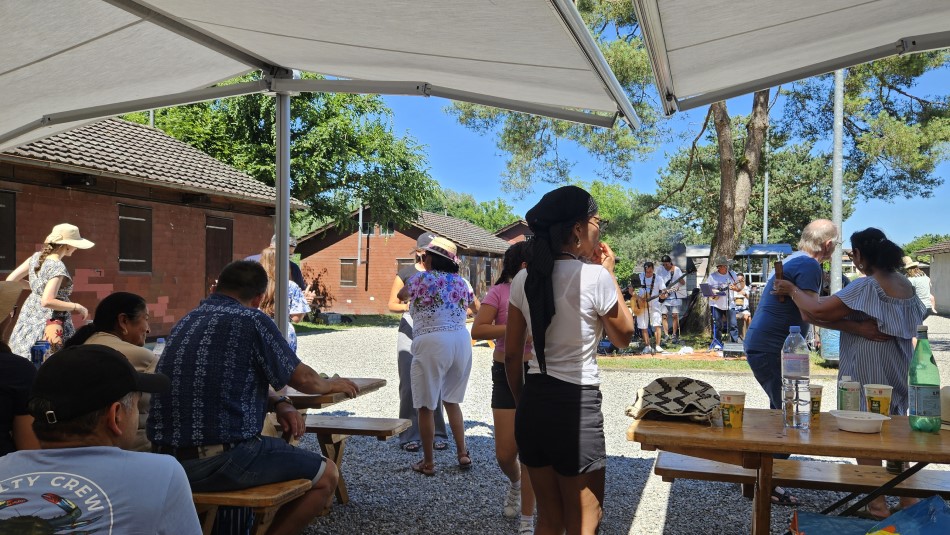 Domingo 29.06.2025: Después de la misa de 11:00 en Mariahilf nos trasladamos a Barackendörfli Riffigweiher (Bachtalen, 6020 Emmen, cerca de la estación de tren de Emmenbrücke-Kapf) donde, como el año pasado, la misión había alquilado una cabaña y su entorno para posibilitar un encuentro de familias alrededor de una barbacoa. La animación musical estuvo a cargo del grupo Palisandro y Raúl Huerta, y la animación infantil a cargo de la Asociación ELASUR escuela de español para niños.