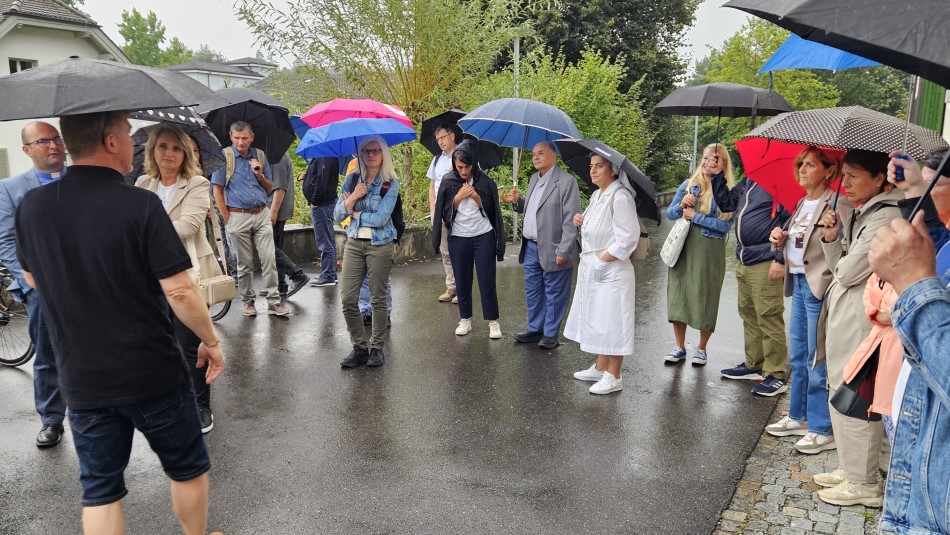 Lunes 28.04.2025: Encuentro de misioneros hispanohablantes ─aunque no todos─ en Lucerna. En los locales de la misión, presentación del proyecto de formación-comportamiento obligatorio del Bistum Basel para voluntarios y colaboradores de las misiones a cargo de D. Andrés Baumgartner, especialmente para los que trabajan con menores. Comida conjunta en un restarurante cercano y visita guiada a Leodegar dirigida por D. Romano Mina. Unas hermosas y fructíferas horas juntos. ↓↓↓