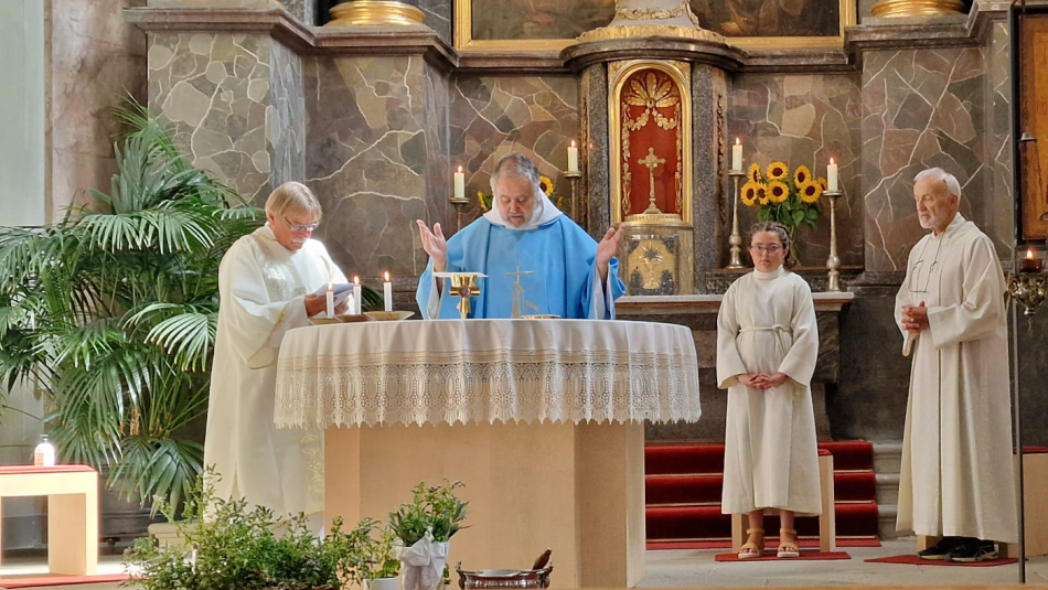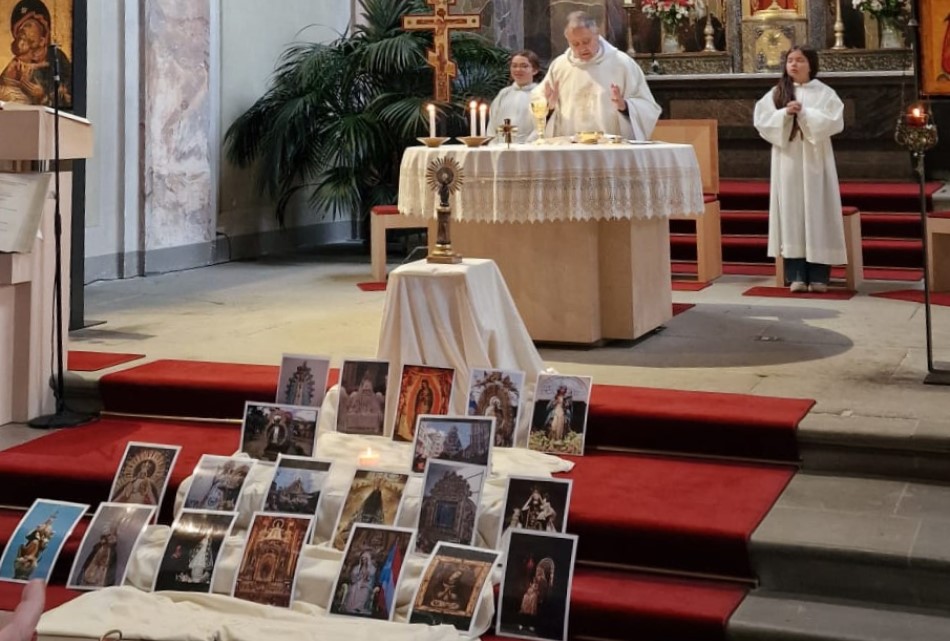 Viernes 15.08.2025: Un año más, en Lucerna, celebramos conjuntamente con el Verein Mariahilf la fiesta de la Asunción de María. Como novedad, el estreno de una casulla de color azul(*). Al final de la misa, siguiendo la tradición suiza, bendición de las hierbas y las flores. ←