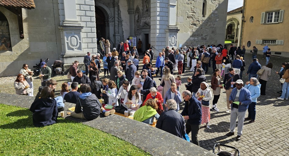 Sábado 17.05.2025: Participamos en la Peregrinación Nacional al Santuario de Einsiedeln, en la que se dieron cita unos dos mil peregrinos de toda Suiza. El evento comenzó a las 11:00 de mañana con la celebración de la Eucaristía presidida por el abad del Santuario y concelebrada por los obispos suizos y un gran número de sacerdotes. Después de la Eucaristía, la comida, confesiones, talleres y encuentros que llenaron una jornada que se terminó a las 16:00 horas con la bendición final de los peregrinos. →